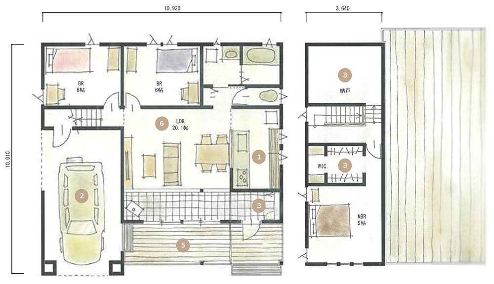 遊び心をくすぐる「ビルトインガレージタイプ」では、居住スペースも充実した、愛車やオートバイ、スポーツギアや道具などを安心して保管できるスペースを生み出し、家族の多様な趣味に対応します。